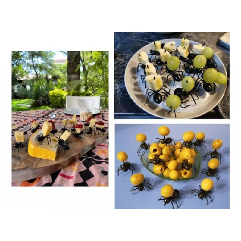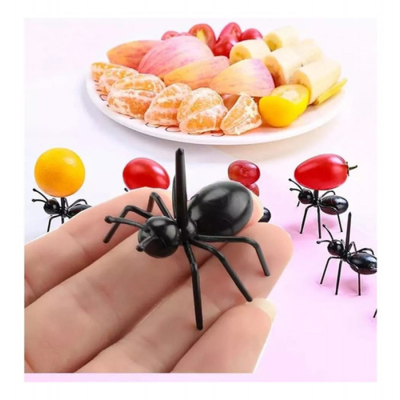 GARFO GARFINHO ESPETO PARA FRUTAS E PETISCOS DE PLASTICO MODELO FORMIGA COM 12 PEÇAS